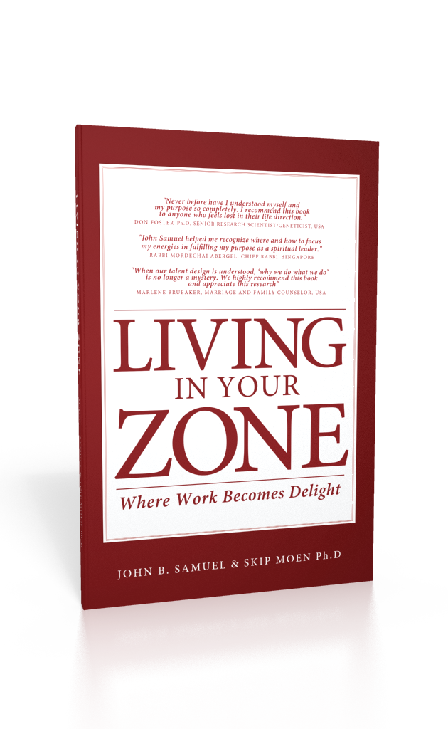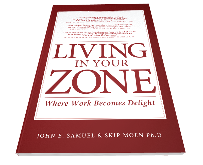 John Samuel is a thought leader and change agent. His expertise and professionalism in facilitating the Talent Diagnostic journey was inspirational, personally life changing, and, of huge significance in identifying how to maximise our corporate sweet spot impact. John navigated a course relevant to my learning style while having careful regard for the big picture of organizational need to ensure zone understanding of the key people and how they could be best positioned to enable optimal output personally and corporately. All the while delivering valuable insights that were couched in wisdom and sensitivity throughout the process. The writings of Jim Collins, particularly, “Good to Great” were an affirmation for our company in ensuring we had the right people on board the bus, however, there was still a missing key, ‘how do we ensure we have them in the right positions?’ What a find when one or our staff came upon 'Living in Your Zone - Where Work Becomes Delight' by John Samuel. John’s professionalism is powerful because he is a living embodiment of what 'Living in Your Zone' looks like. Consequently, every interaction throughout the diagnostic process packed a punch that sometimes left you breathless.back to top ↑